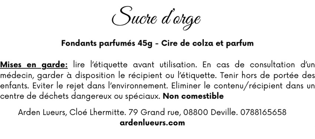 Plongez dans la douceur réconfortante du Sucre d’orge. Une bougie gourmande et sucrée, aux notes de bonbon et de vanille, qui évoque la magie des fêtes et les souvenirs d’enfance.