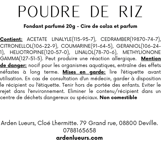 Composé d’une cire végétale, sans OGM, il diffuse un parfum authentique, créé à Grasse et garanti sans CMR ni phtalates.