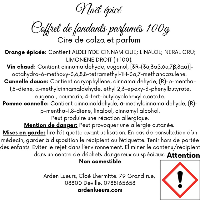 Composé de quatre fondants — Orange épicée, Vin chaud, Cannelle douce et Pomme cannelle — il évoque les douceurs de Noël, les soirées au coin du feu et les parfums envoûtants des marchés d’hiver.